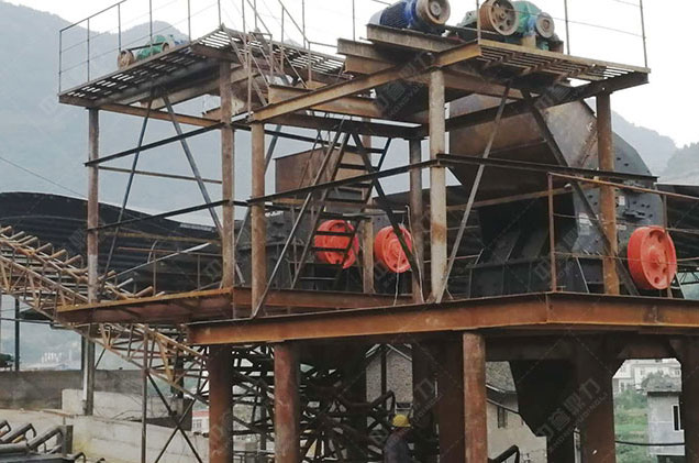 設(shè)備配置:DLZSJ1213雙轉(zhuǎn)子制砂機(jī)+2YK2460振動篩+配套設(shè)備