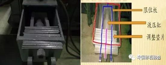 先松開調(diào)整墊片的固定螺釘,然后液壓缸動(dòng)作,推動(dòng)里面的彈簧,使反擊板與轉(zhuǎn)子的間距變小,將外面的墊片裝到里面,接著松開液壓缸,直至限位板卡著里面的墊片。