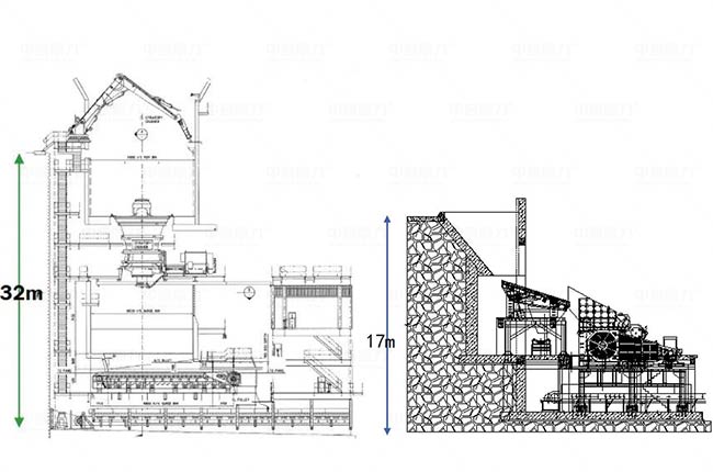 傳統(tǒng)旋回破和臥式旋回破基礎(chǔ)建設(shè)對(duì)比圖
