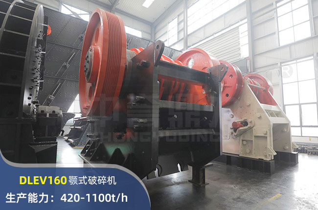 DLEV160顎式破碎機(jī),一款時(shí)產(chǎn)可達(dá)千噸的粗破設(shè)備,其進(jìn)料粒度大小在1000mm左右,生產(chǎn)能力可達(dá)時(shí)產(chǎn)1100噸,配電功率250kw。