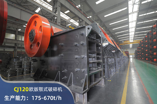 CJ120歐版顎式破碎機(jī),進(jìn)料口尺寸1200×870mm,進(jìn)料粒度700mm,出料大小70-200mm,電機(jī)功率132kw,時(shí)產(chǎn)可達(dá)670噸。