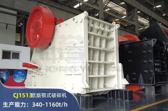 CJ1513顎式破碎機(jī)進(jìn)料口尺寸1500×1300mm,進(jìn)料粒度1040mm,出料大小150-300mm,電機(jī)功率200kw,時(shí)產(chǎn)可達(dá)1160噸。