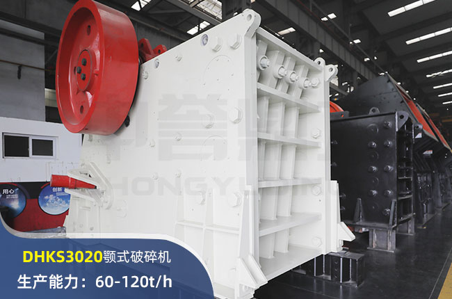 DHKS3020顎式破碎機進料粒度在425mm,出料大小50-120mm,時產(chǎn)量在60-120噸左右,電機是55kw的,屬于中小型顎式破碎機。