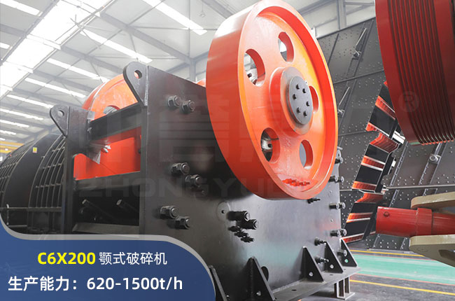 C6X200顎式破碎機(jī)進(jìn)料口尺寸1500×2000mm,進(jìn)料粒度≤1500mm,出料大小≤175mm,電機(jī)功率400kw,時(shí)產(chǎn)量在1500噸左右。