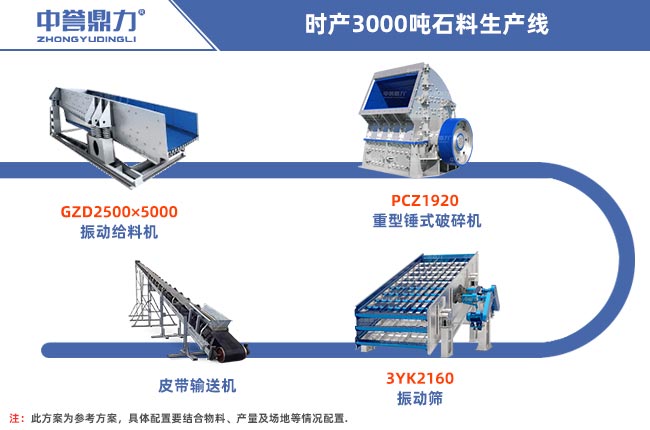 說(shuō)明:一臺(tái)PCZ1920重錘式破碎機(jī)產(chǎn)量在1500噸,上述方案需要采用雙線并行設(shè)計(jì),一般還會(huì)配上一臺(tái)或兩臺(tái)整形破,用于回料破碎,以提升生產(chǎn)線生產(chǎn)效率。