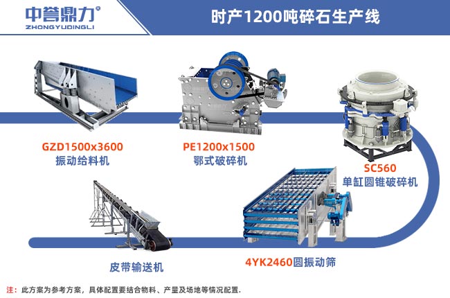 時(shí)產(chǎn)1200噸中等硬度物料破碎方案