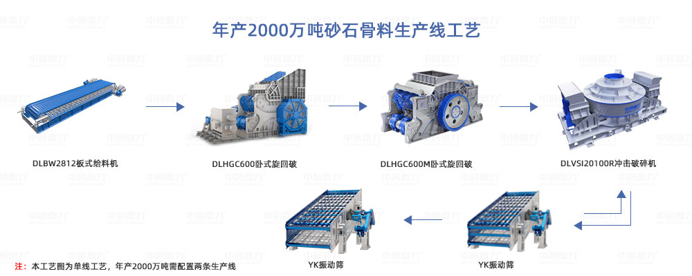年產(chǎn)2000萬噸砂石骨料生產(chǎn)規(guī)模較大,投資大,根據(jù)破碎物料差異,以粗碎主機(jī)為主有錘破方案、鄂破方案、旋回破方案,各具優(yōu)勢。