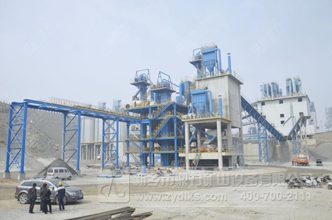 項目投產時間2015年11月,主要生產機制砂,設備配置:雙轉子制砂機、空壓機、提升機、振動篩、風機等設備。
