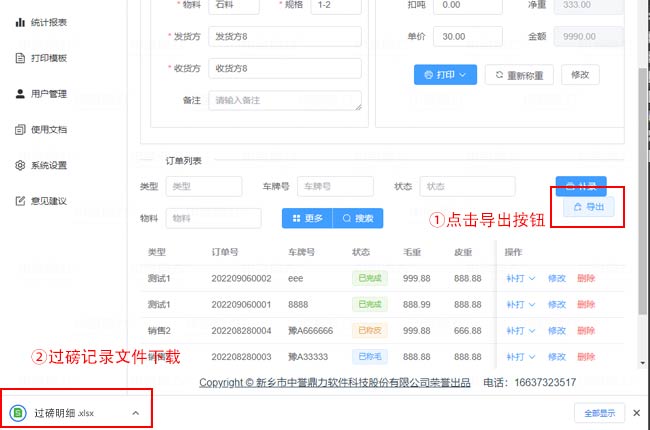 中譽(yù)鼎力電腦地磅秤軟件可設(shè)置用戶權(quán)限,根據(jù)權(quán)限設(shè)定可以調(diào)出或?qū)С鲞^(guò)磅記錄,導(dǎo)出文件為excel文件。