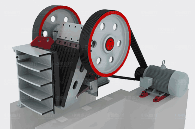 簡擺顎式破碎機(jī)的電機(jī)帶驅(qū)動皮帶和皮帶輪運(yùn)轉(zhuǎn),通過偏心軸帶動動顎做前后、上下運(yùn)動,當(dāng)動顎上升時,動顎板靠近定顎板,物料被擠壓、搓、碾等多重作用破碎,當(dāng)動顎下行時,動顎板在復(fù)位彈簧的作用下,遠(yuǎn)離定顎板,物料在重力作用下,卸出破碎腔。