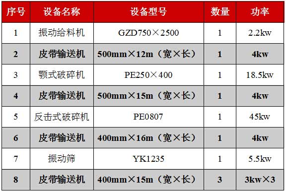 由震動(dòng)喂料(GZD750×2500)、鄂破機(jī)(PE250×400)、pf反擊破(PF0807)、篩石子機(jī)(YK1235)、傳送設(shè)備(400毫米寬X16m長(zhǎng))等機(jī)械組成;布置處理量通常為20-30噸/小時(shí)。