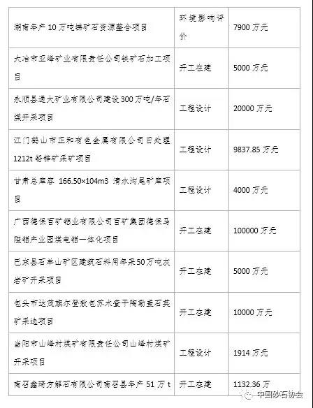 湖南青猴洞1000萬元建筑石料用灰?guī)r礦開采項目;廣東橫磊山礦區(qū)1500萬建筑石料用灰?guī)r礦建設(shè)項目;扶綏縣東門鎮(zhèn)岜樓村琴準(zhǔn)屯達獨山1000萬石灰?guī)r礦開采加工項目;巴東縣石羊山礦區(qū)5000萬建筑石料用年采50萬噸灰?guī)r礦開采項目;汨羅市鑫峰石材有限公司年開采8萬立方米花崗巖改擴建項目。