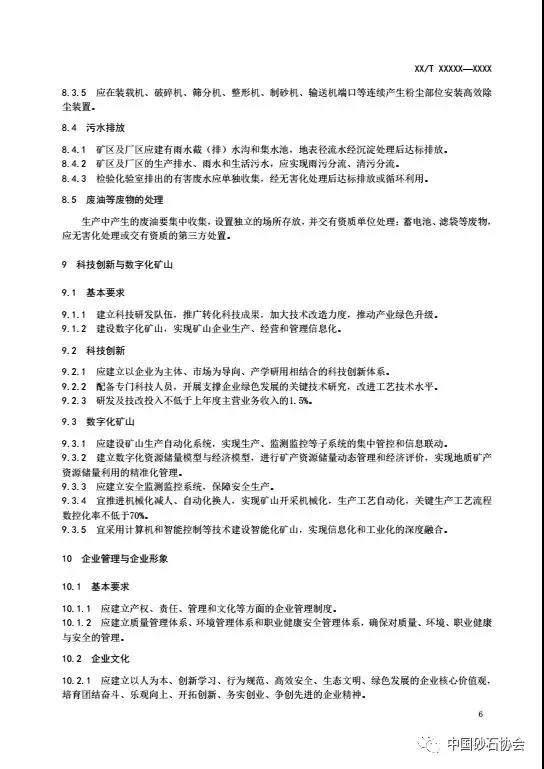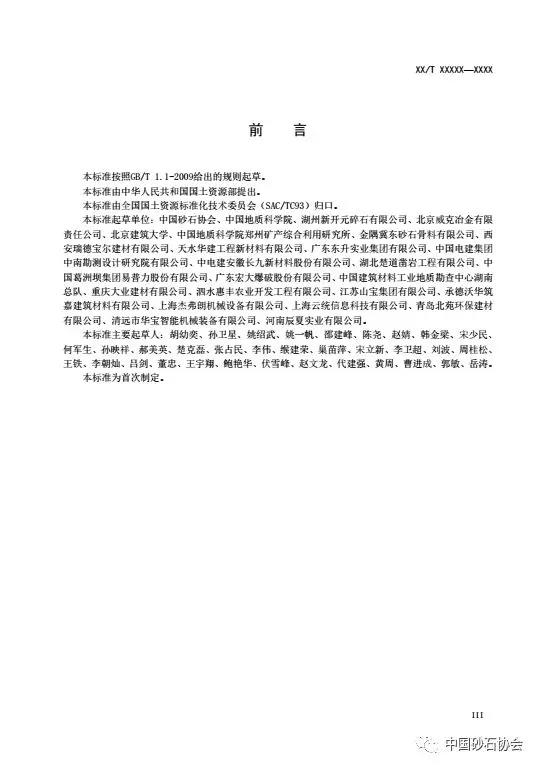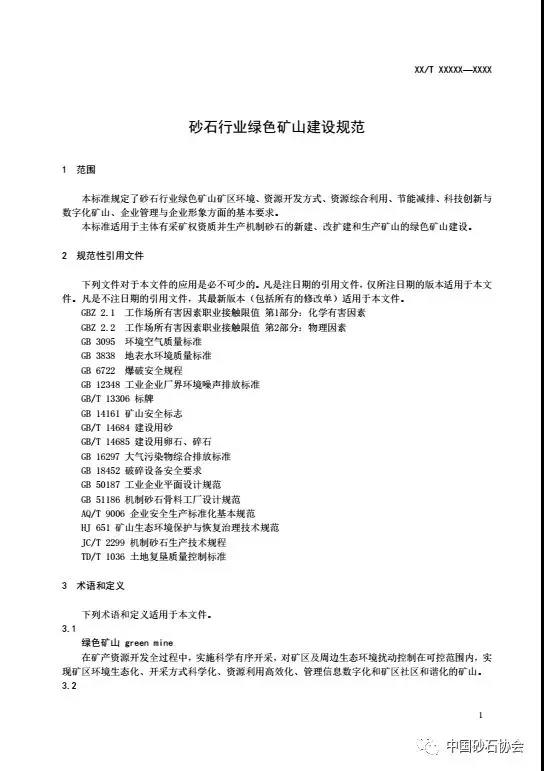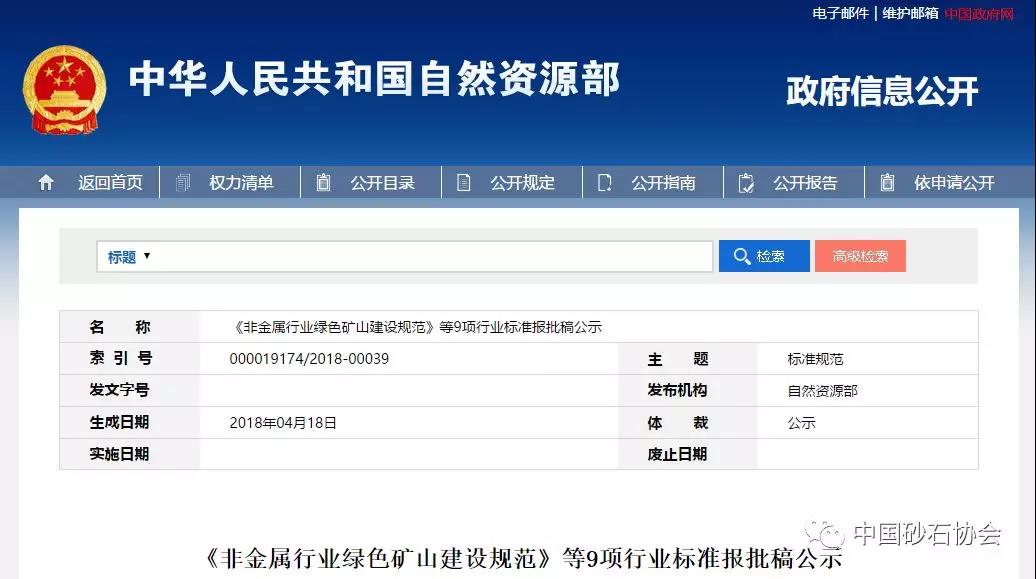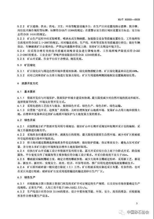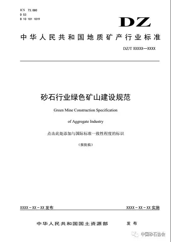 按照土資源行業(yè)制定程序要求和計(jì)劃安排,中砂石協(xié)會(huì)組織編制的《砂石行業(yè)綠色礦山建設(shè)規(guī)范》報(bào)批稿已通過土資源化技術(shù)委員會(huì)審查,現(xiàn)予公示。同時(shí)進(jìn)行公示的還有《非金屬行業(yè)綠色礦山建設(shè)規(guī)范》等,共9項(xiàng)行業(yè)報(bào)批稿。