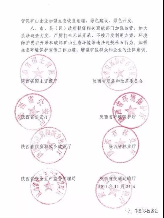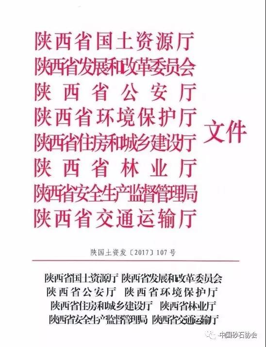 導(dǎo)讀:2017年11月24日,陜西省土資源廳、陜西省發(fā)展和改革委員會(huì)、陜西省公安廳、陜西省公安廳、陜西省環(huán)境保護(hù)廳、陜西省住房與城鄉(xiāng)建設(shè)廳、陜西省林業(yè)廳、陜西省安生產(chǎn)監(jiān)督管理局和陜西省交通運(yùn)輸廳八部門聯(lián)和發(fā)布《關(guān)于加快推進(jìn)采石礦山整治 保障石料市場(chǎng)供
