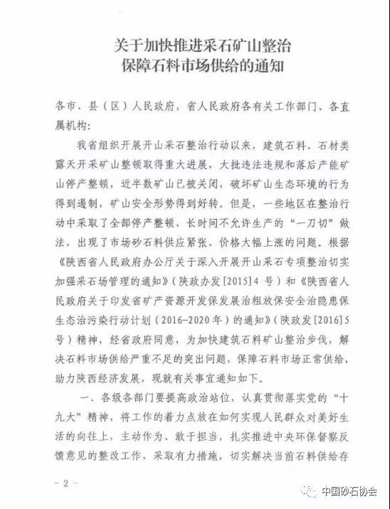 此前,即2017年11月24日,陜西省土資源廳、陜西省發(fā)展和改革委員會(huì)、陜西省公安廳、陜西省公安廳、陜西省環(huán)境保護(hù)廳、陜西省住房與城鄉(xiāng)建設(shè)廳、陜西省林業(yè)廳、陜西省安生產(chǎn)監(jiān)督管理局和陜西省交通運(yùn)輸廳八部門聯(lián)和發(fā)布《關(guān)于加快推進(jìn)采石礦山整治 保障石料市場(chǎng)供給的通知》。為加快建筑石料礦山整治步伐,解決石料市場(chǎng)供應(yīng)嚴(yán)重不足的突出問(wèn)題,保障石料市場(chǎng)正常供給,助力陜西經(jīng)濟(jì)發(fā)展。要求: