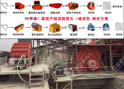 一條完整的沙石場(chǎng)生產(chǎn)線(xiàn)的主要設(shè)備包括爆破開(kāi)采設(shè)備、給料設(shè)備、破碎篩分設(shè)備,皮帶輸送設(shè)備、制砂設(shè)備以及成品輸送設(shè)備等。在不同的石料生產(chǎn)線(xiàn)中,所用到的給料設(shè)備、篩分設(shè)備、皮帶輸送設(shè)備基本上是可以通用的,但是破碎設(shè)備和制砂設(shè)備卻是可以選擇的。傳統(tǒng)的破碎設(shè)備一般由顎式破碎機(jī)和反擊式破碎機(jī)兩級(jí)破碎組成,但是在針對(duì)石灰石、煤矸石等抗壓程度低于200Mpa的中硬度石料時(shí),我們新鄉(xiāng)鼎力礦山設(shè)備有限公司研發(fā)并生產(chǎn)的重型錘式破碎機(jī)因其設(shè)計(jì)合理,錘盤(pán)大,錘頭重等結(jié)構(gòu)優(yōu)勢(shì),可以“一破頂兩破”,一次成型,為客戶(hù)了35%的成本。下面我們以石灰石為例,簡(jiǎn)單的說(shuō)一下整個(gè)沙石場(chǎng)設(shè)備生產(chǎn)流程。
