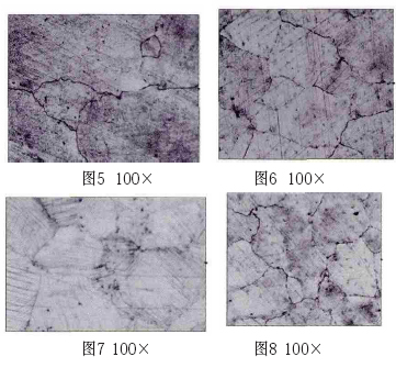 分別對4組試樣進(jìn)行了檢測,顯微組織如圖5~圖8 所示,力學(xué)性能見附表。力學(xué)性能和金相組織