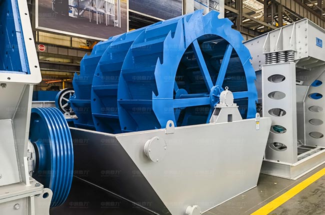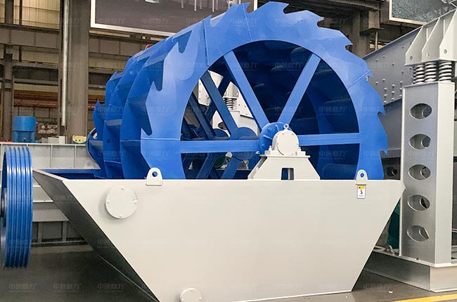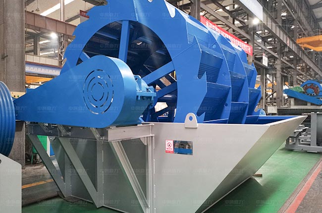 洗砂機(jī)工作時(shí),電機(jī)通過(guò)三角帶、減速機(jī)、齒輪減速后帶動(dòng)葉輪緩慢轉(zhuǎn)動(dòng),砂石由給料槽進(jìn)入洗槽中,在葉輪的帶動(dòng)下翻滾,并互相研磨,除去覆蓋砂石表面的雜質(zhì),同時(shí)破壞包覆砂粒的水汽層,以利于脫水;同時(shí)加水,形成強(qiáng)大水流,及時(shí)將雜質(zhì)及比重小的異物帶走,并從溢出口洗槽排出,完成清洗作用。干凈的砂石由葉片帶走, 后砂石從旋轉(zhuǎn)的葉輪倒入出料槽,完成砂石的清洗作用。