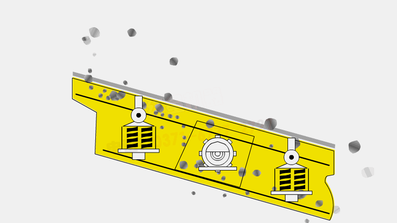振動(dòng)篩的運(yùn)動(dòng)是由電動(dòng)機(jī)通過(guò)三角帶驅(qū)動(dòng)具有偏心質(zhì)量的激振器,從而使篩機(jī)做周期性的不對(duì)稱往復(fù)機(jī)械振動(dòng),使篩面上的物料層松散并離開(kāi)篩面被拋起,使細(xì)級(jí)物料能透過(guò)料層下落,通過(guò)篩孔分離,并將卡在篩孔中的物料振出,細(xì)級(jí)物料向下部移動(dòng),通過(guò)篩網(wǎng)孔徑大小限制,實(shí)現(xiàn)篩選作業(yè)。