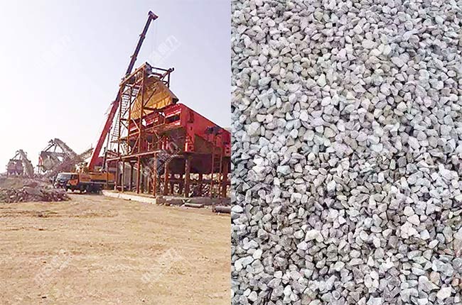 設(shè)備配置簡單,建設(shè)周期短,投資金額低是該項(xiàng)目的主要特點(diǎn),整套生產(chǎn)線設(shè)備均安裝在室外,場地比較大,地勢平緩,土建難度較低,振動篩、石料輸送機(jī)等設(shè)備采用鋼結(jié)構(gòu)支撐,因?yàn)闆]有除塵措施,所以整條生產(chǎn)線在作業(yè)時灰塵比較大,如果后期需要環(huán)保生產(chǎn),還可以加裝收塵設(shè)備。