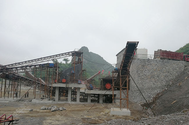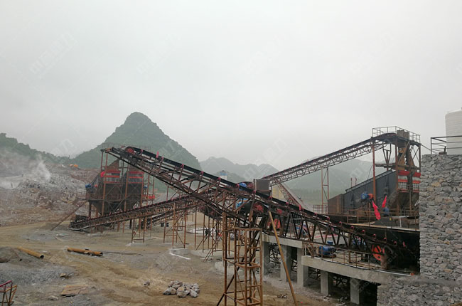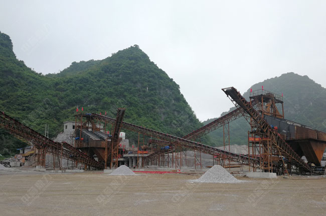 廣西來(lái)賓這了800噸的石料破碎生產(chǎn)線是由ZG2028給料機(jī)、PCZ1620重錘破、4YKZ3070振動(dòng)篩等設(shè)備構(gòu)成,主要生產(chǎn)的是12石子、13石子、石粉。
