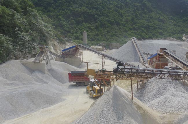 頭破采用錘式破碎機(jī),破碎石料直接通過(guò)篩機(jī)篩分出部分成品料