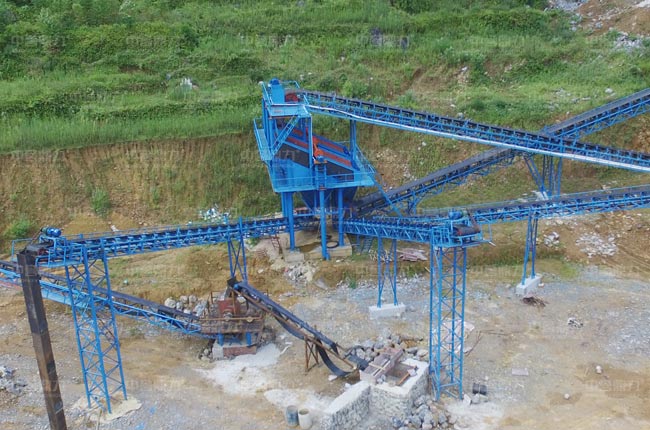 石灰?guī)r物料硬度不高,采用PCZ1512重錘式破碎機(jī),時(shí)產(chǎn)量250-320噸,一次破碎成型,不需要二級(jí)設(shè)備的投資,從PCZ1512重錘式破碎機(jī)破碎出來的物料可直接進(jìn)篩機(jī)篩分出3種不同規(guī)格的成品石料。此種工藝配置簡單,投資小。