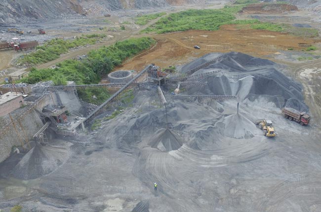 該生產(chǎn)線投產(chǎn)時間是2013年6月,主要生產(chǎn)0—30mm混合料、10—20、10—30mm的石子、瓜米石、石粉等石料,日產(chǎn)量可達3000噸,成品石料應用于水泥廠及混凝土攪拌站。