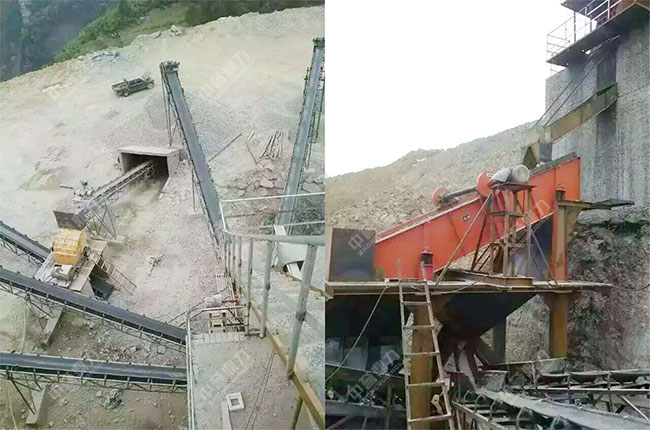 該產(chǎn)線依山而建,利用山體的坡度,將原料直接送進(jìn)主破碎機(jī)內(nèi)進(jìn)行粗碎,粗碎后的物料經(jīng)過(guò)篩分后,再進(jìn)入二破設(shè)備內(nèi)進(jìn)行整形中細(xì)碎,生產(chǎn)出來(lái)的物料經(jīng)過(guò)篩選分級(jí)后輸送至相對(duì)應(yīng)的成品料堆。