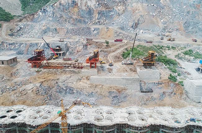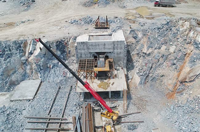 上面是項目在建設(shè)過程中的實拍圖片,破碎機、給料機、振動篩等主要設(shè)備都已經(jīng)安裝完成,料倉的基礎(chǔ)也已經(jīng)建好。