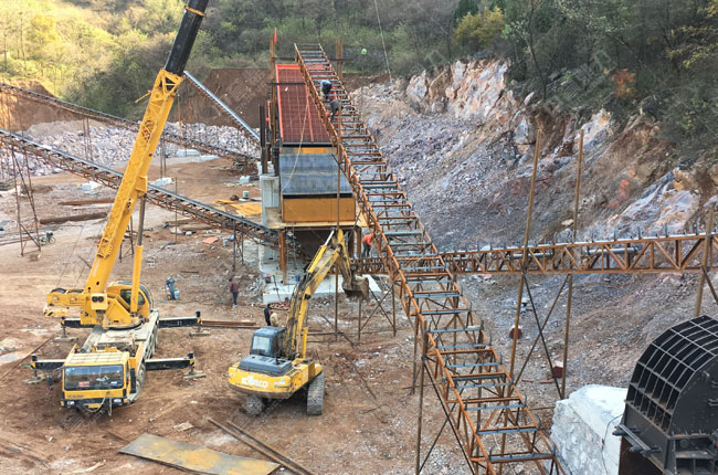 華隆攪拌站時(shí)產(chǎn)700噸骨料生產(chǎn)線為新建項(xiàng)目,采用了中譽(yù)鼎力pcz1615重錘破、pc1216整形破以及配套給料機(jī)、振動(dòng)篩等設(shè)備,主要生產(chǎn)1-3、1-2、0-5、石粉石料,項(xiàng)目已于2018年1月投產(chǎn)使用。