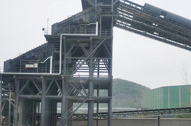 采用雙線并行設(shè)計(jì),兩臺(tái)DLPCZ重型錘式反擊破碎機(jī)對(duì)原料進(jìn)行破碎,通過(guò)皮帶機(jī)輸送至振動(dòng)篩篩選分級(jí),振動(dòng)篩階梯式設(shè)計(jì),減少皮帶機(jī)的投資,實(shí)現(xiàn)多種規(guī)格石料的篩分。