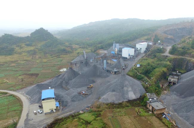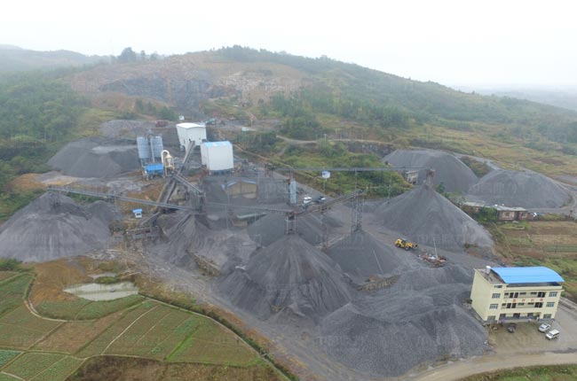 依照項(xiàng)目地勢高低設(shè)計(jì),整個(gè)破碎到成品料流程呈階梯狀,原料儲存空間大,銷售方便。