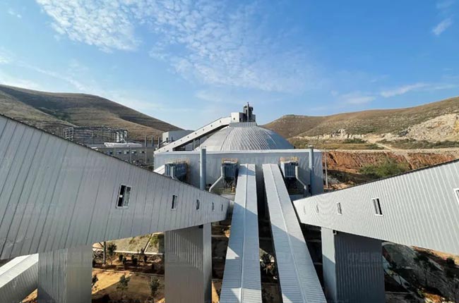 2019年7月簽約,EPC總包模式建設(shè)時(shí)產(chǎn)4000噸的碎石生產(chǎn)線,加工石灰石,采用錘式破碎機(jī)破碎,生產(chǎn)線整體封閉設(shè)計(jì),引用有礦山智能化管理系統(tǒng)。
