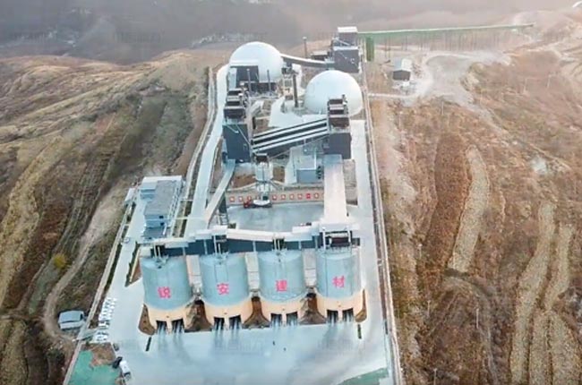 銳安建材秉承綠色發(fā)展理念,生產(chǎn)線整體采用封閉設(shè)計,26臺脈沖袋式除塵器、6臺風(fēng)力輸送設(shè)備、1.2公里的皮帶封閉長廊、灑水車、霧炮機等除塵措施,成品料儲存于4個大型筒倉,筒倉下智能放料裝車,從生產(chǎn)到銷售防塵多措并舉,實現(xiàn)“采石不見石、產(chǎn)塵不見塵”,項目不論從環(huán)保、自動化程度、產(chǎn)能等在當?shù)囟际乔缚蓴?shù)的。