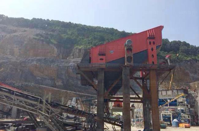 該時(shí)產(chǎn)1000噸混凝土骨料生產(chǎn)線主要設(shè)備有:ZGC2050給料機(jī)、PCZ1620重錘破、PC1220整形破、YKZ振動(dòng)篩等骨料加工設(shè)備