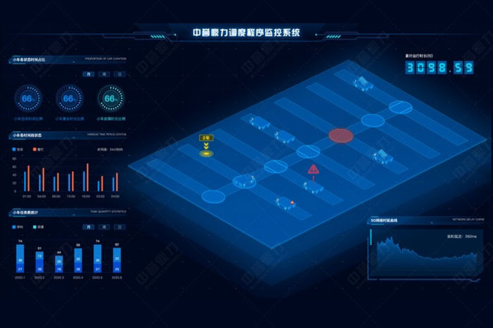 通過數(shù)據(jù)大屏,可以實時查看RGV軌道車和轉盤的位置狀態(tài),對整個RGV調度系統(tǒng)運行數(shù)據(jù)做實時監(jiān)控,智能分析調度數(shù)據(jù),生成數(shù)據(jù)圖表等。