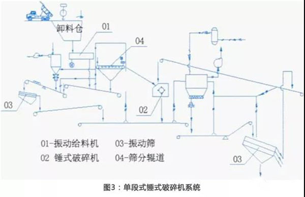 a) 當(dāng)系統(tǒng)能力要求較大時(shí)需要三級(jí)破碎或者較多臺(tái)破碎機(jī),此時(shí)流程復(fù)雜,項(xiàng)目投資高;