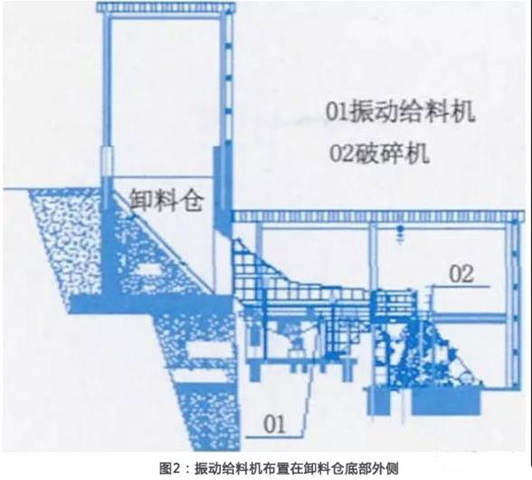圖2:振動(dòng)給料機(jī)布置在卸料倉(cāng)底部外側(cè)