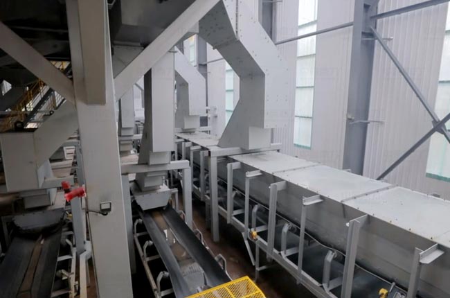 A:直接采用箱式皮帶輸送機(jī),也可以通過加裝皮帶廊道抑制粉塵,在落料點(diǎn)加裝干霧抑塵裝置。