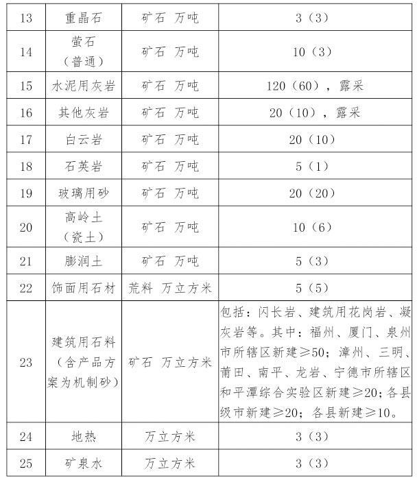 福建省重點礦種礦山最低開采規(guī)模
