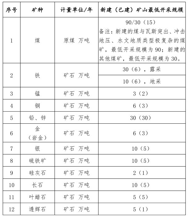 2、嚴格礦產(chǎn)資源開發(fā)準入,明確探礦權(quán)申請轉(zhuǎn)為采礦權(quán)、礦業(yè)權(quán)延續(xù)的具體準入條件,并優(yōu)化調(diào)整重點礦種礦山最低開采規(guī)模。