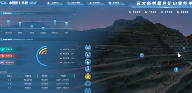 實時監(jiān)控設備運行情況,如啟動、停機、故障、預警,可實現(xiàn)對設備風險預測及提醒,為礦山生產運營奠定了監(jiān)視的基礎。