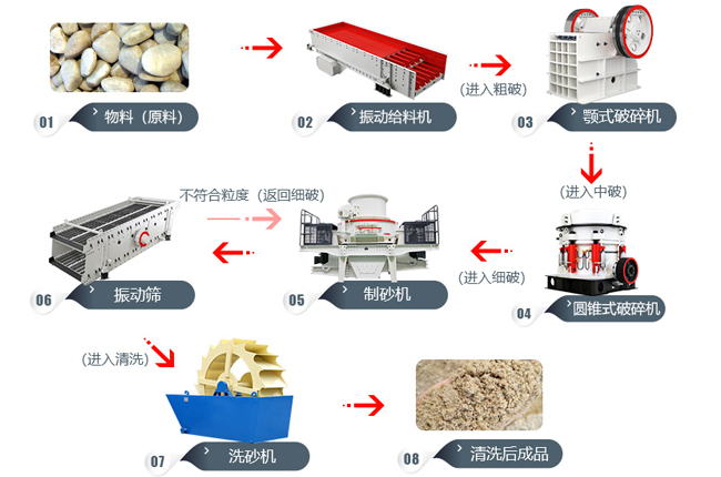 搭配機(jī)械:PE600*900顎破、GYS300圓錐式碎石機(jī)、07制砂機(jī)械、2YK1237篩機(jī)分機(jī)、2914洗石機(jī)