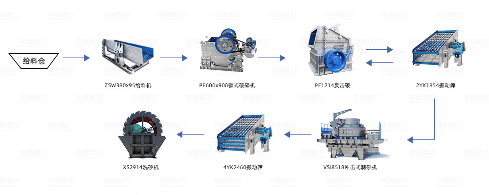 方案一:鄂破機(jī)+反擊破+VSI制砂機(jī)