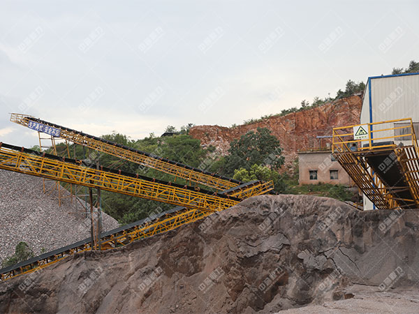 方案一:原料堆+ZSW490x130振動(dòng)送料機(jī)+PCZ1615重錘頭破碎機(jī)+3YK 3072振動(dòng)篩+運(yùn)輸機(jī)(B1200x33米、B800x15米(3臺(tái))、B650x10米、B1000x35米)