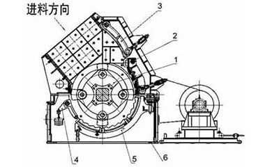 電動(dòng)機(jī)帶動(dòng)轉(zhuǎn)子在破碎腔內(nèi)高速旋轉(zhuǎn)。物料自上部給料口給入機(jī)內(nèi),受高速運(yùn)動(dòng)的錘頭的打擊、沖擊、剪切、研磨作用而粉碎。在轉(zhuǎn)子下部,設(shè)有篩板、粉碎物料中小于篩孔尺寸的粒級(jí) 通過篩板排出,大于篩孔尺寸的粗粒級(jí)阻留在篩板上繼續(xù)受到錘子的打擊和研磨,后通過篩板排出機(jī)。